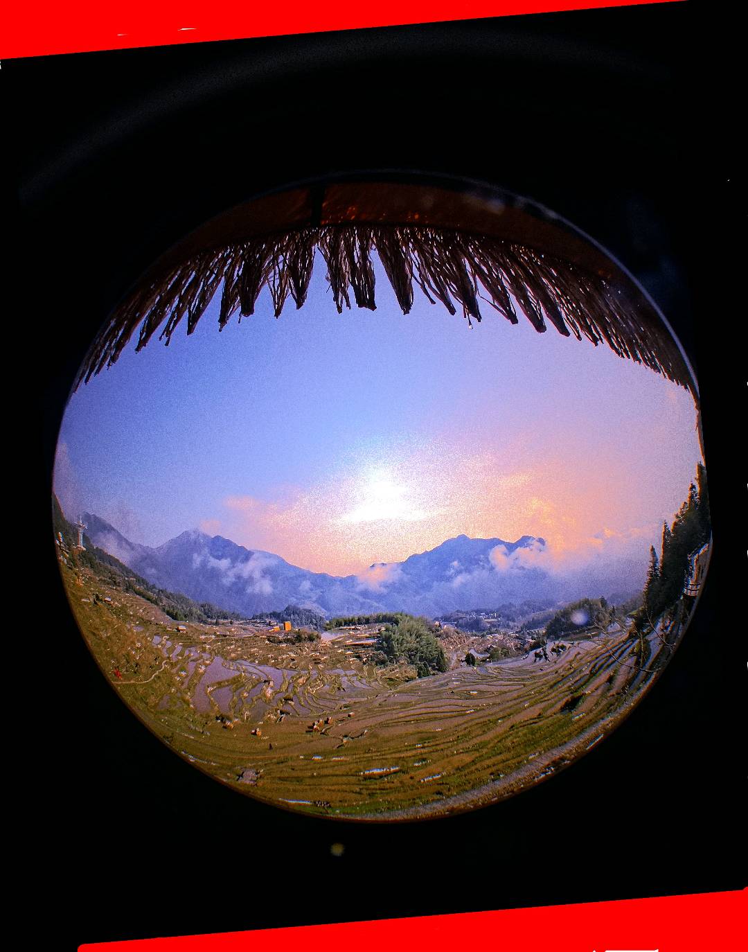 作品说明:摄于浙江丽水元阳梯田。以元阳看农业,蒸燕而上。作品以眼晴视角看到元阳美丽的山河景色。