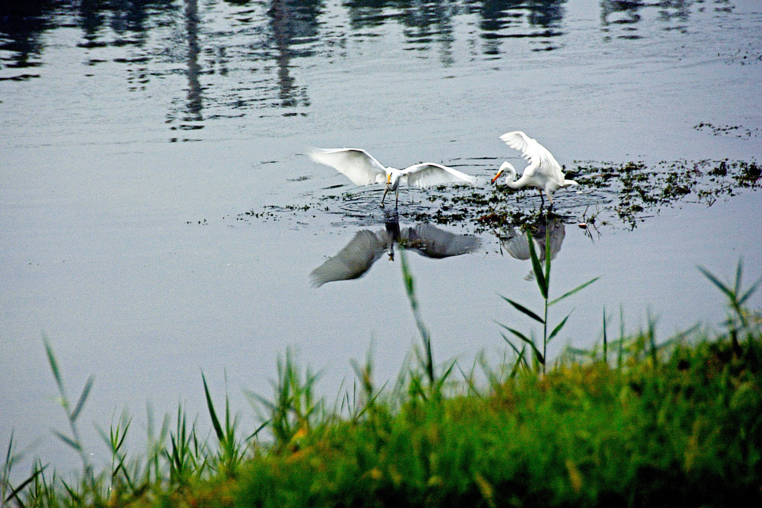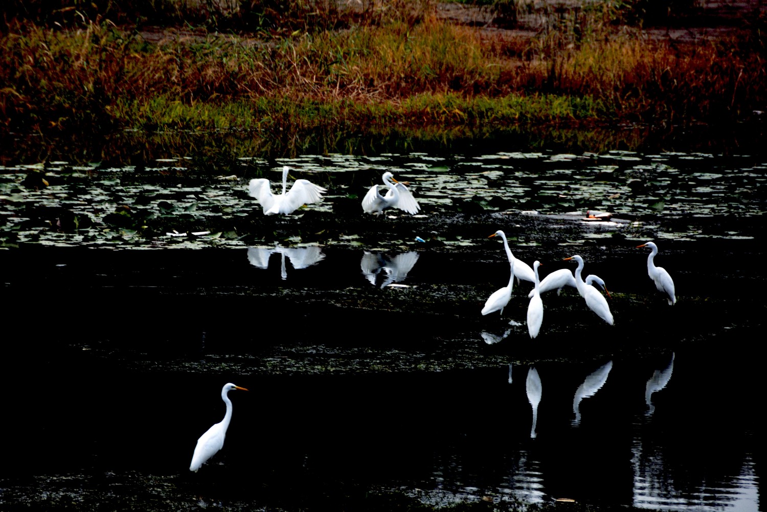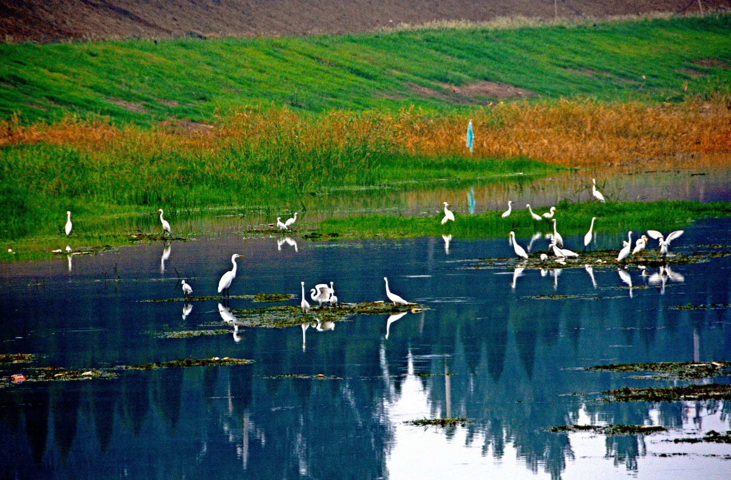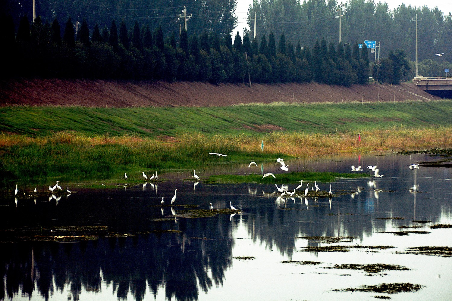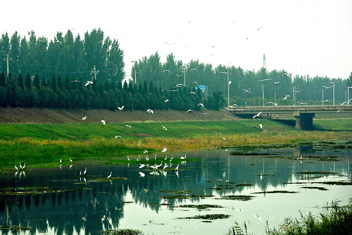 作品说明:河畔水草丰茂,两岸树木丛生,鹭鸟或水中嬉戏、或振翅高飞、或水边栖息,好一幅人与自然和谐共生的美好画卷。