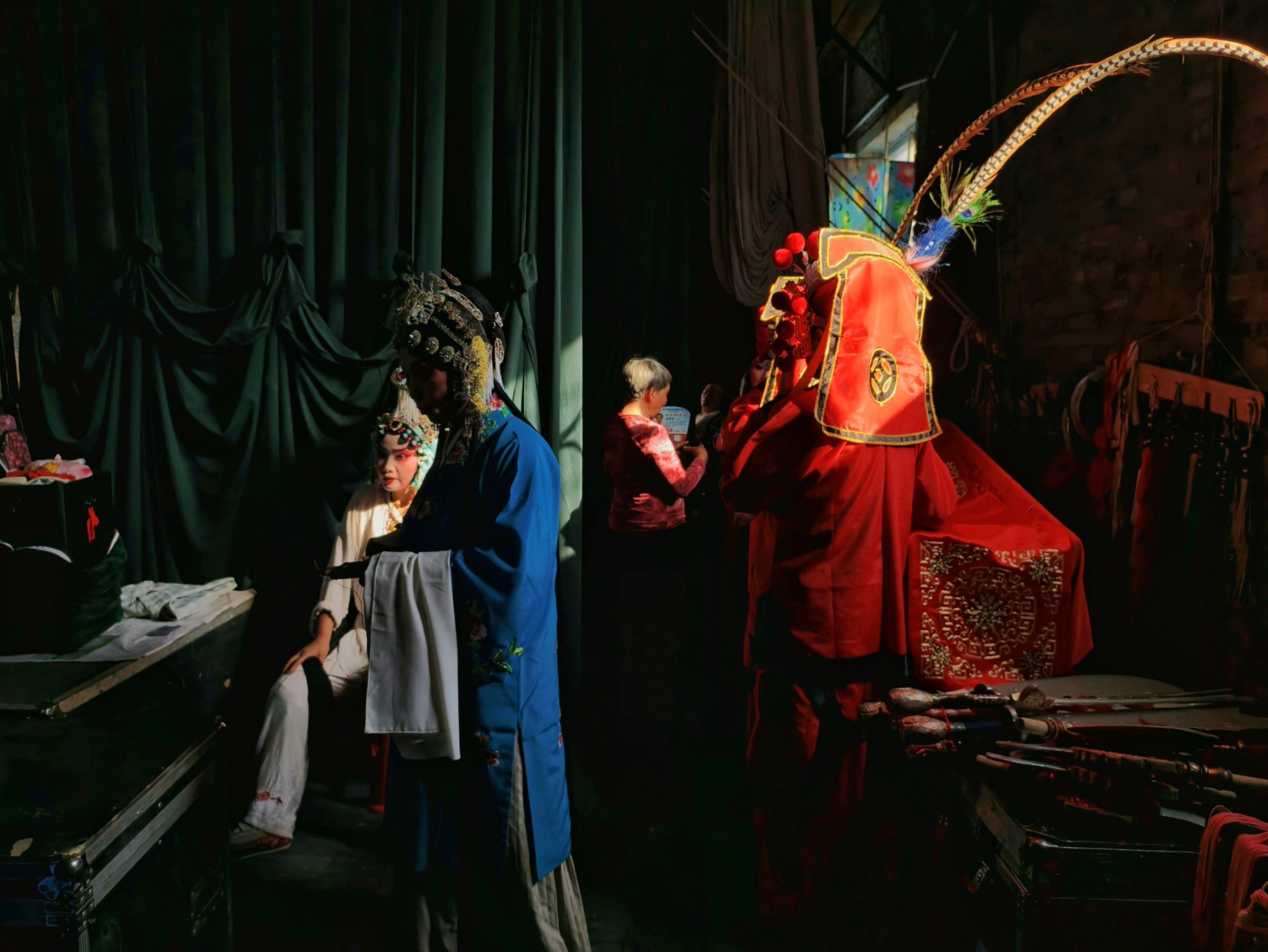 作品说明:在村戏的后台上窗外的一束光投射在忙碌的演员身上