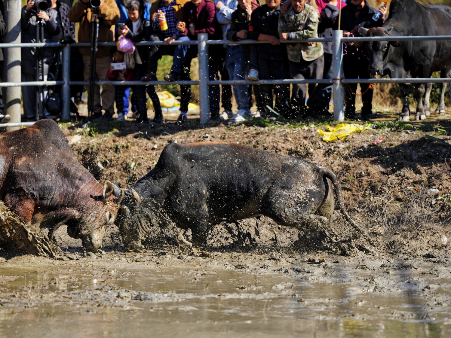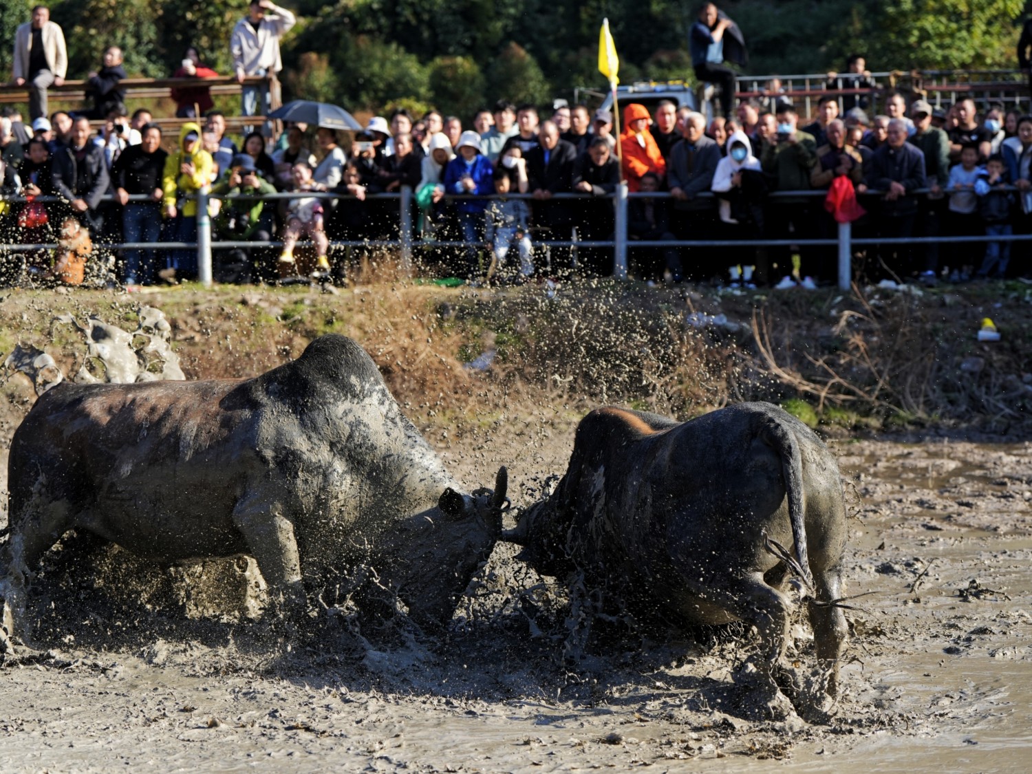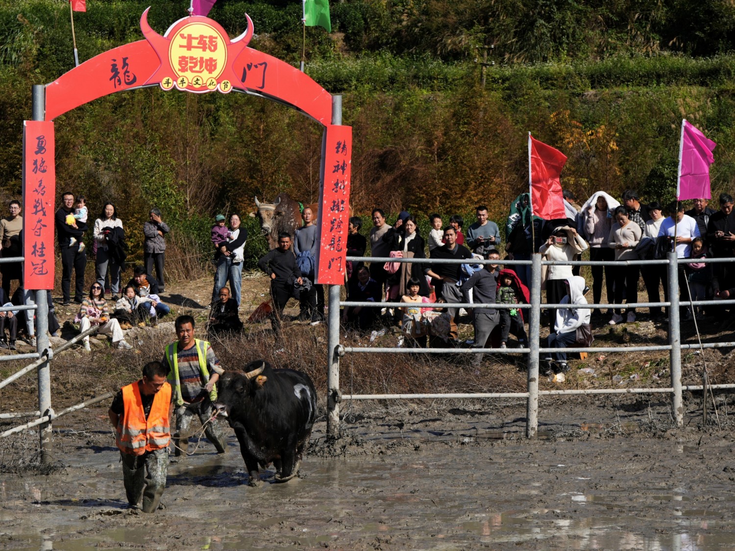 作品说明:浙江省非物质文化遗产“金华斗牛”,多在春节、中秋等传统节日利用农闲举办,观众云集时形成庙会式集会,庆祝五谷丰登、祈求风调雨顺,作为娱神仪式传承千年,象征对大自然的敬畏与感恩,被誉为“东方一绝”。