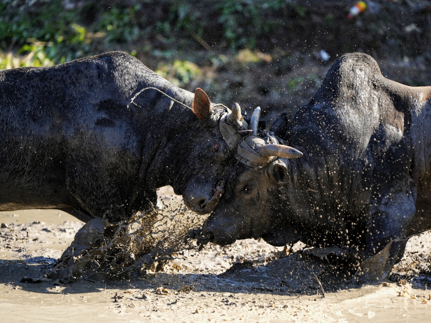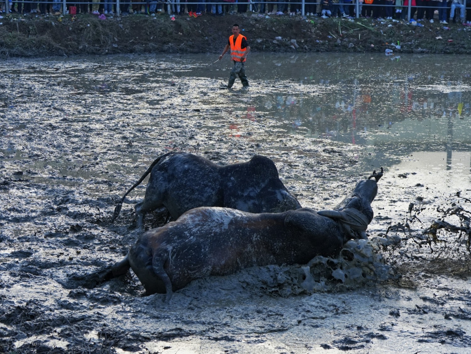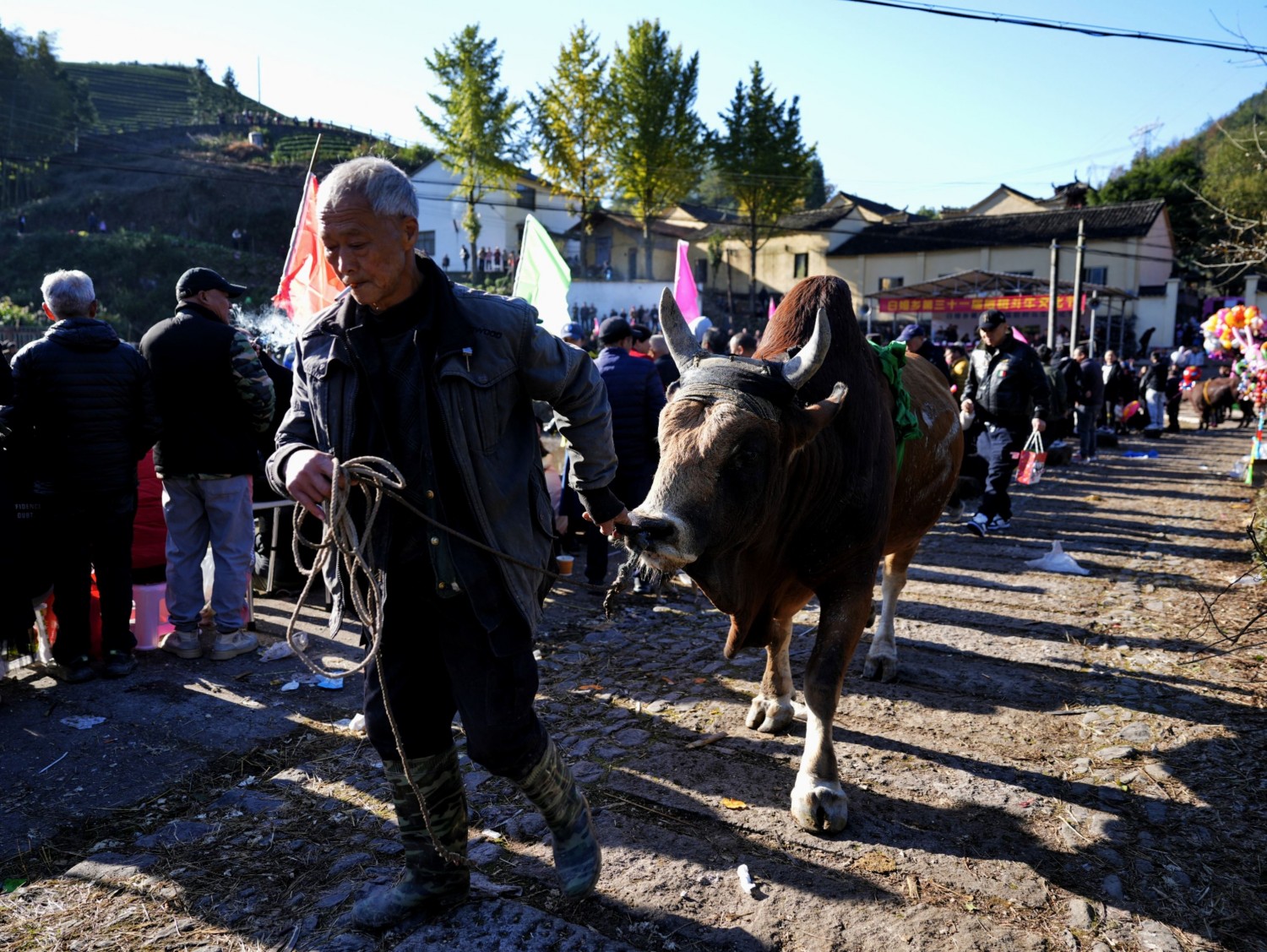 作品说明:浙江省非物质文化遗产“金华斗牛”,多在春节、中秋等传统节日利用农闲举办,观众云集时形成庙会式集会,庆祝五谷丰登、祈求风调雨顺,作为娱神仪式传承千年,象征对大自然的敬畏与感恩,被誉为“东方一绝”。
