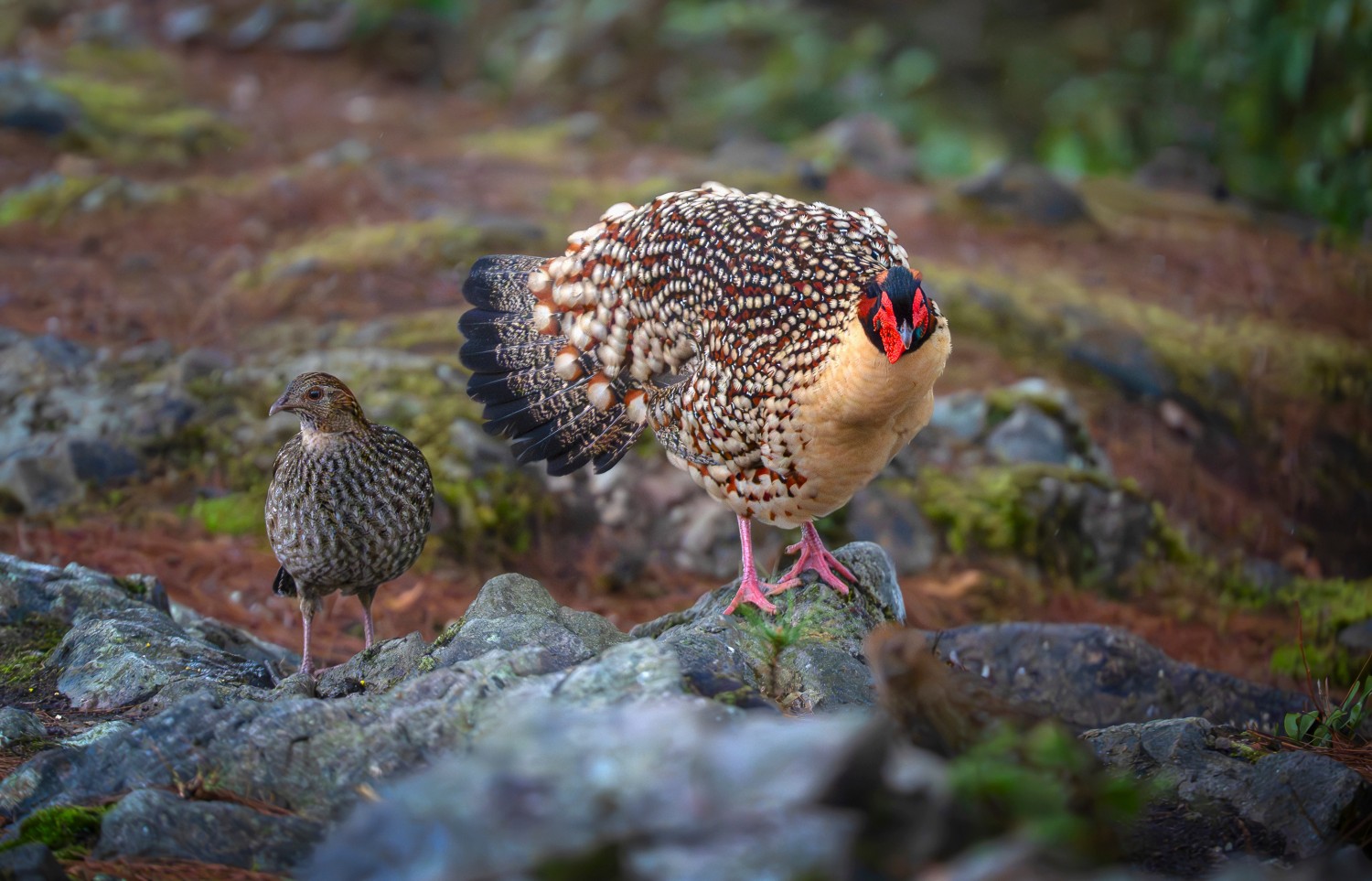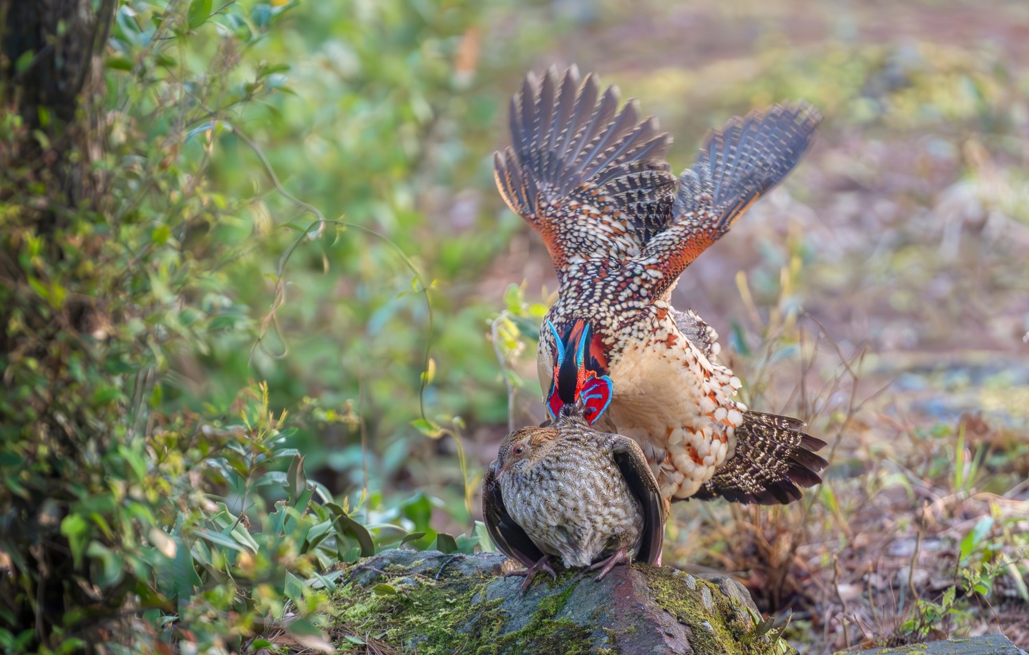 作品说明:2025年3月份拍摄于福建建瓯,黄腹角雉是中国的特有鸟种。 因栖息地遭到破坏,分布范围不断向中、高山地带退缩,对其种群的生存和遗传多样性构成极大的威胁。 被列入中国《国家重点保护野生动物名录》一级。 被《世界自然保护联盟濒危物种红色名录》(IUCN)列为易危(VU)物种。 3月份是黄腹角雉的发情交配期。