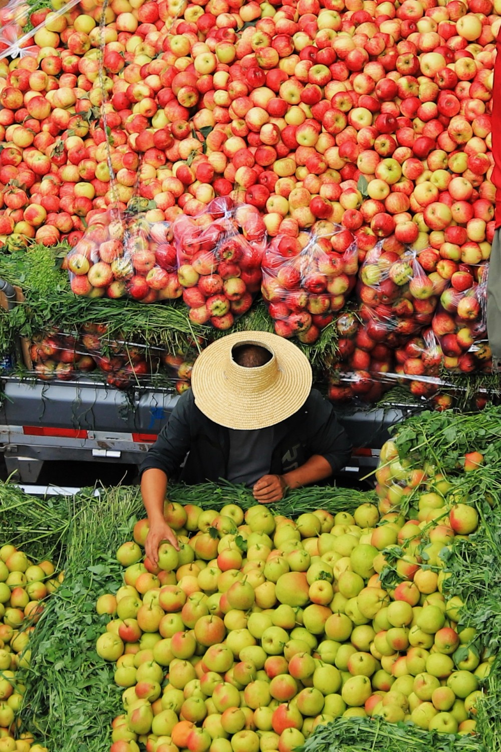 作品说明:红的苹果,绿的梨,今年的收成不错
