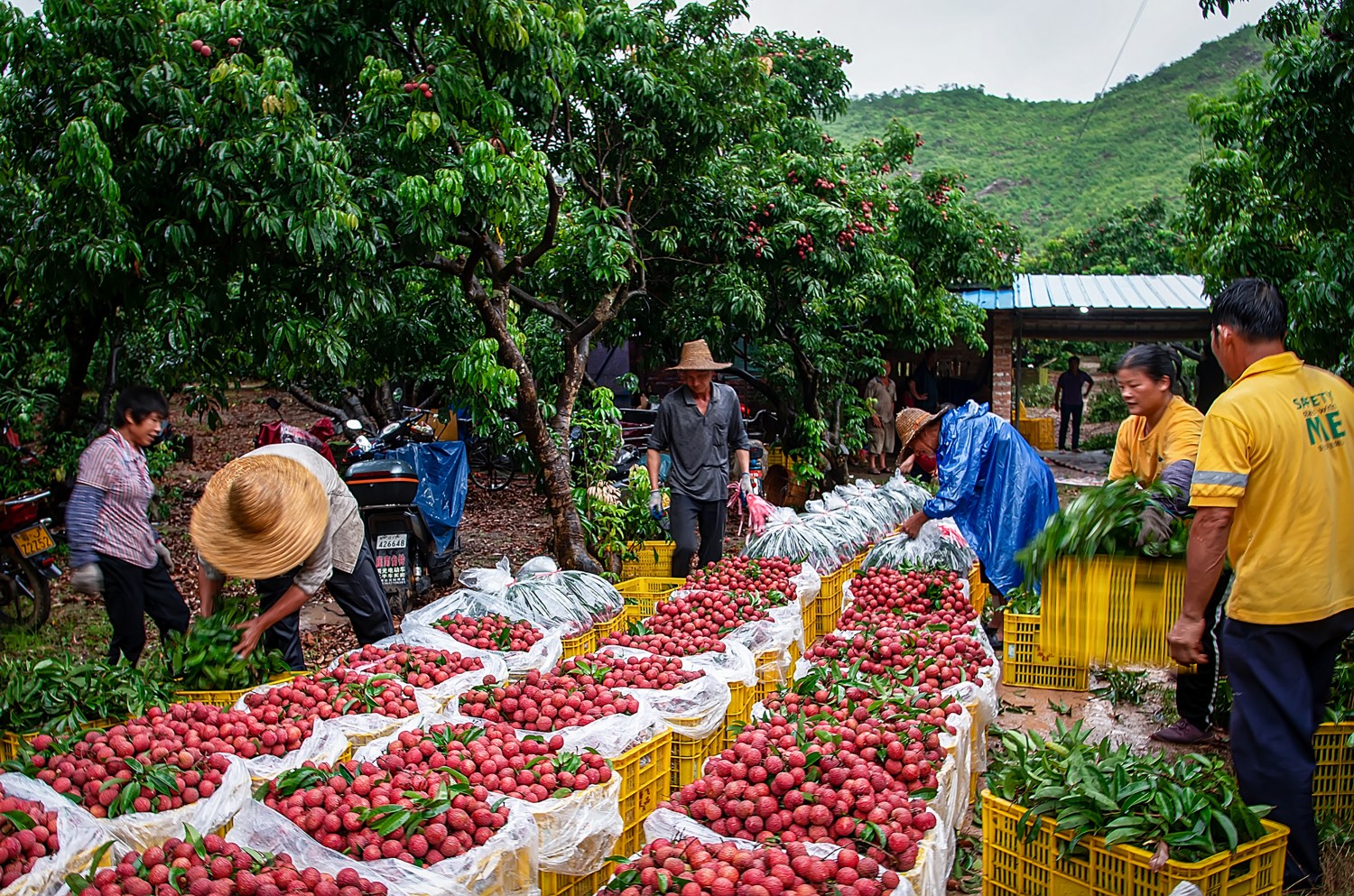 作品说明:广东省江门市新会区崖门镇古兜村的荔枝园里荔枝大丰收,劳动创造幸福,红红火火好日子。