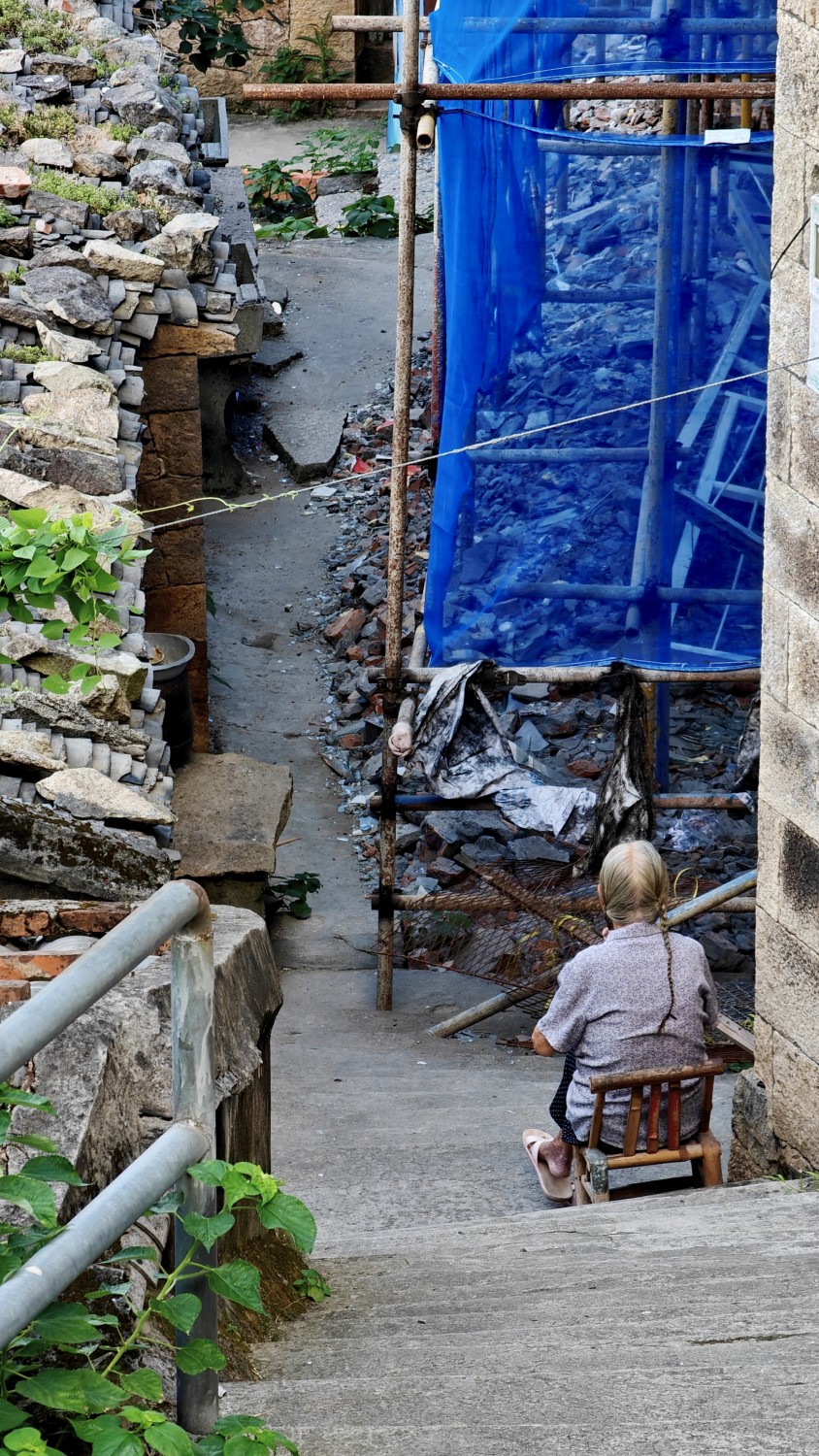 作品说明:温岭山村的街角,一位老奶奶坐在竹椅上,精心打理着她的小辫,看着老宅的变迁。