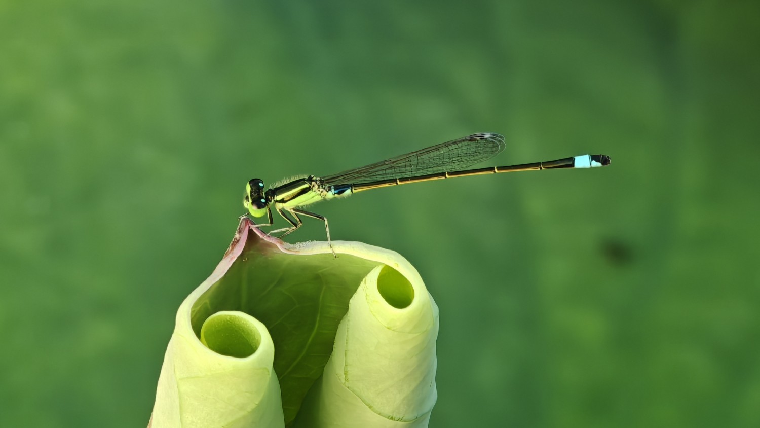 作品说明:小荷尖尖,蜻蜓立上头