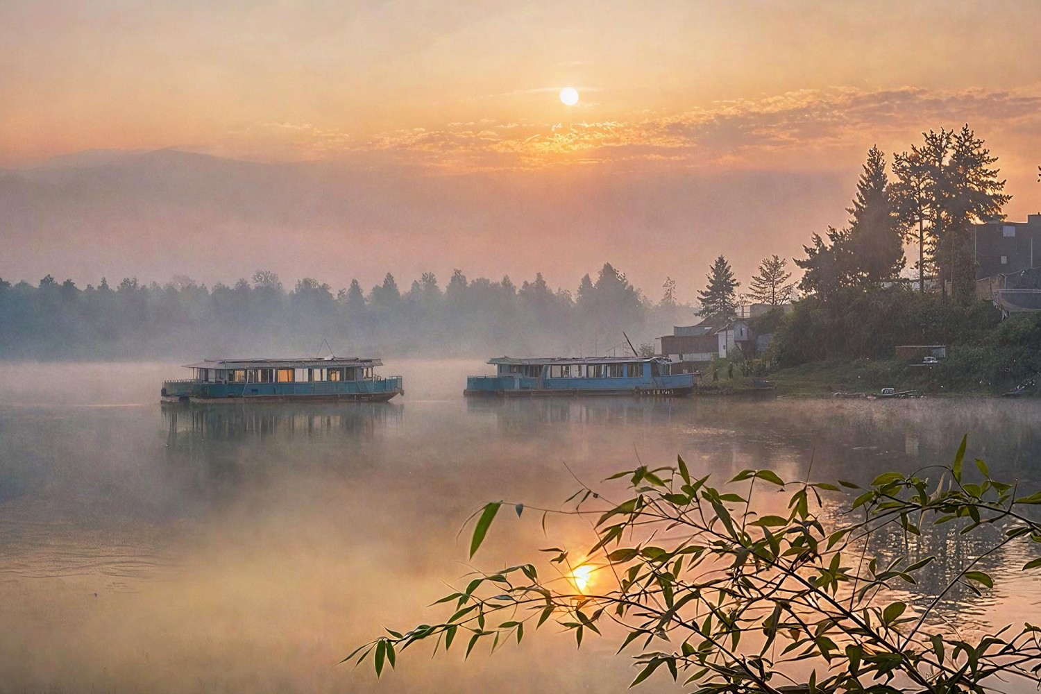 作品标题:暮湖轻舟映霞天