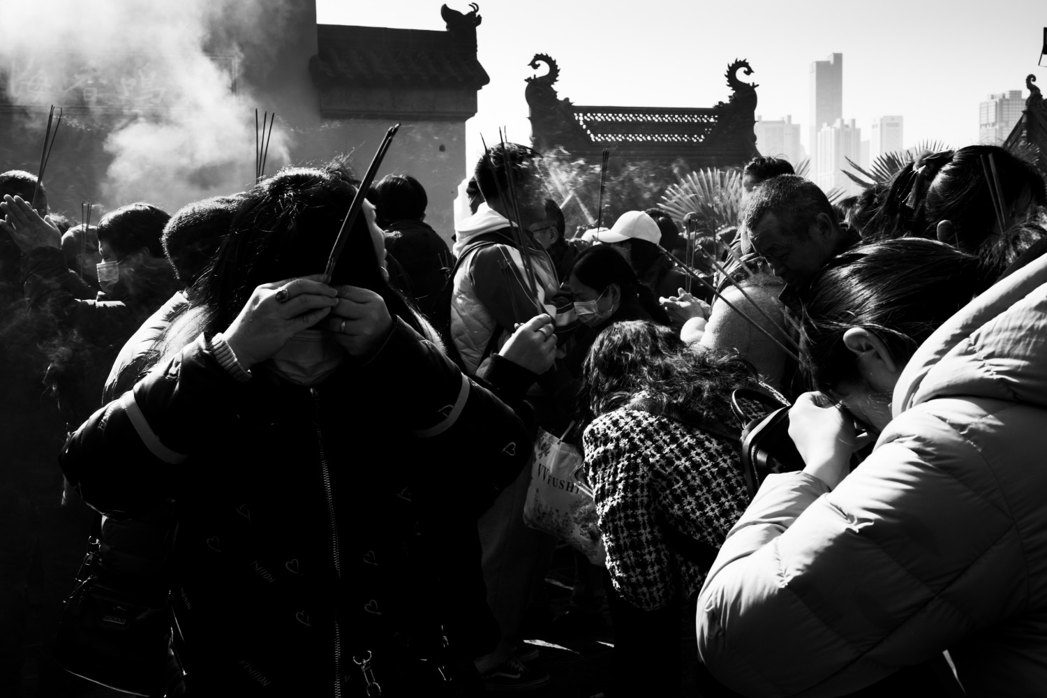 作品说明:南京鸡鸣寺的大年初一,祈福的人潮与袅袅香火,将新年的期许揉进了寺宇的时光,模糊密集的人影,让“祈福”从宏大的节日场景落回到具体的心动瞬间。黑白影调是千年古刹的沉静,是新春伊始的祈盼,更是藏在鸡鸣寺初一香火里,真情流露的人间烟火气。