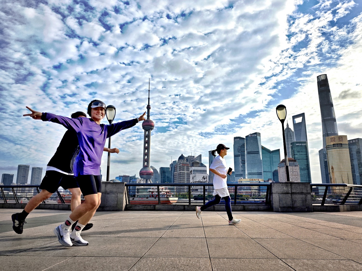 作品说明:此作品以上海外滩为背景。晨练人群中,年轻人放飞的姿态成为视觉焦点,将都市地标与青春活力相融合,传递出清晨外滩的蓬勃朝气,展现出生活与城市景观交融的美好,既记录日常运动场景,又彰显城市独特韵味与生命活力