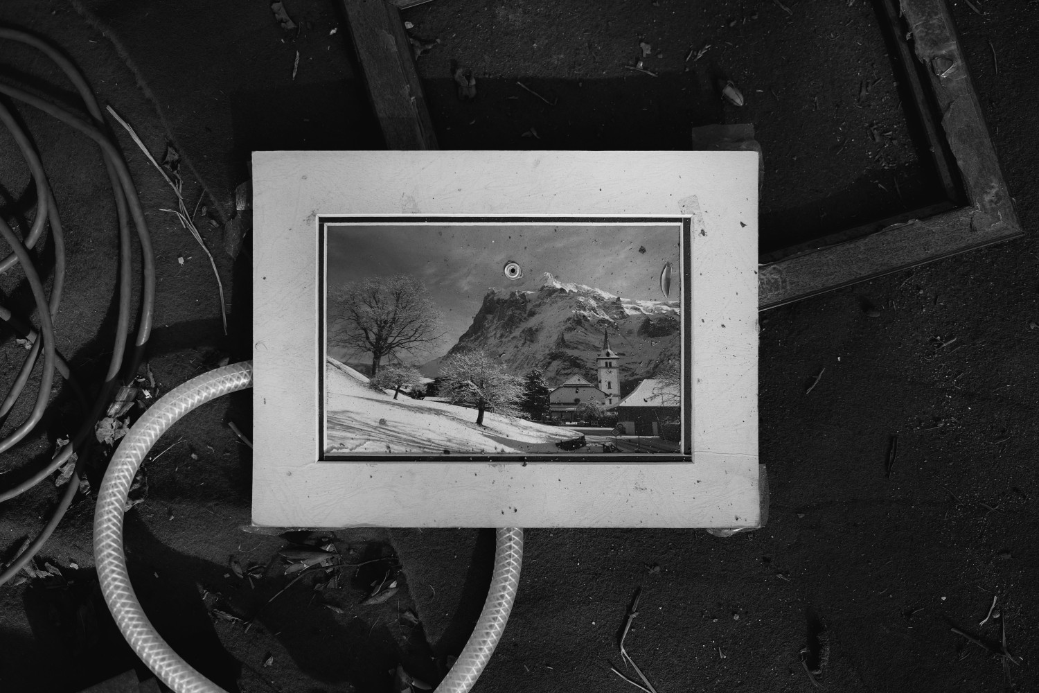 作品说明:一处废品回收站里的一副风景照静静地躺在地上