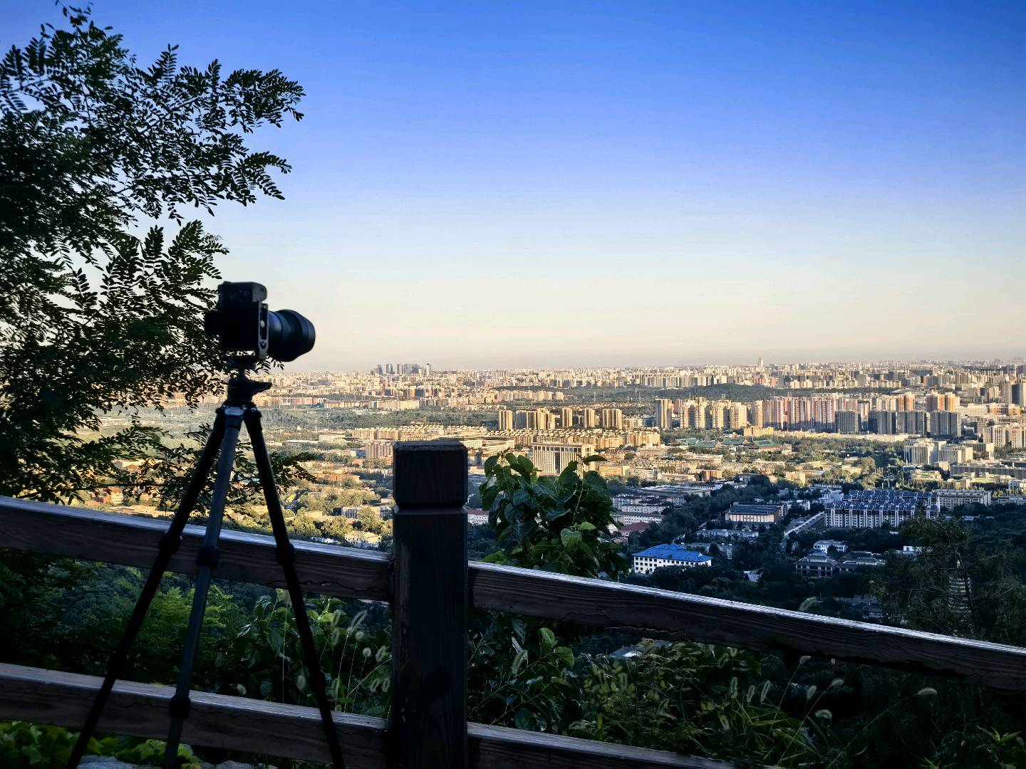 作品说明:夏天,我站在八大处六处观景台上俯瞰北京城,这个视野无以伦比 ,蓝天之下,密密麻麻的楼宇像积木般铺展开,中央电视塔高高耸立,成了视觉焦点。山间绿树和城市建筑相映,既有自然的清新,又有都市的繁华,这种交融感特别棒,拍出来的照片都像电影画面。