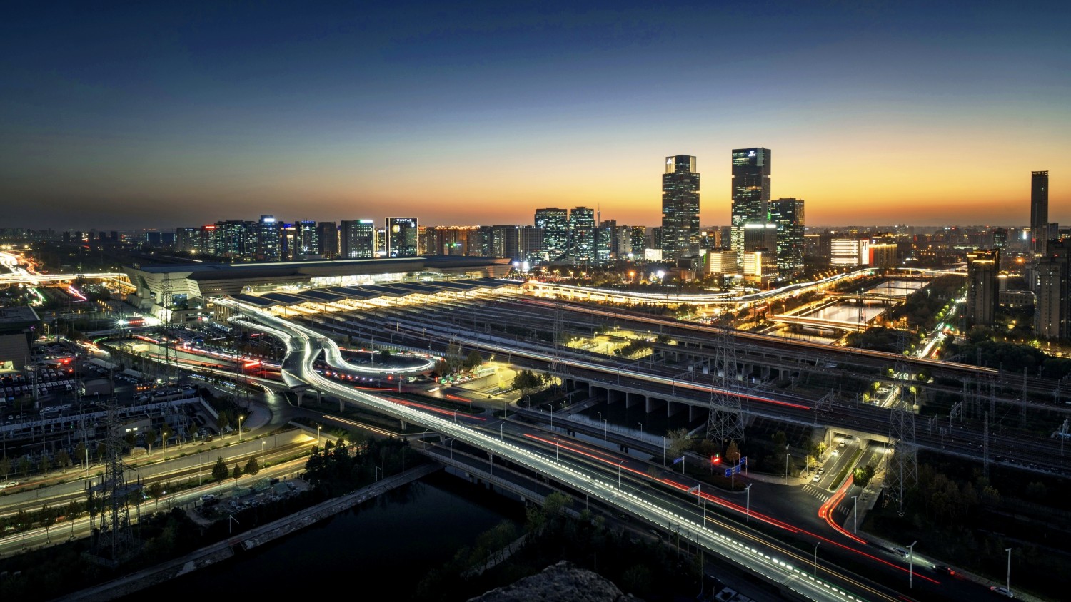 作品说明:郑州,因铁路而兴,被称为“被火车拉来的城市”。画面定格于郑州东站的蓝调时刻,暮色浸染天际,蓝紫与橙黄交织。站内灯火璀璨,与城市建筑的光影交相辉映,铁轨延伸向远方,似乎在诉说这座城市因交通而蓬勃的活力。