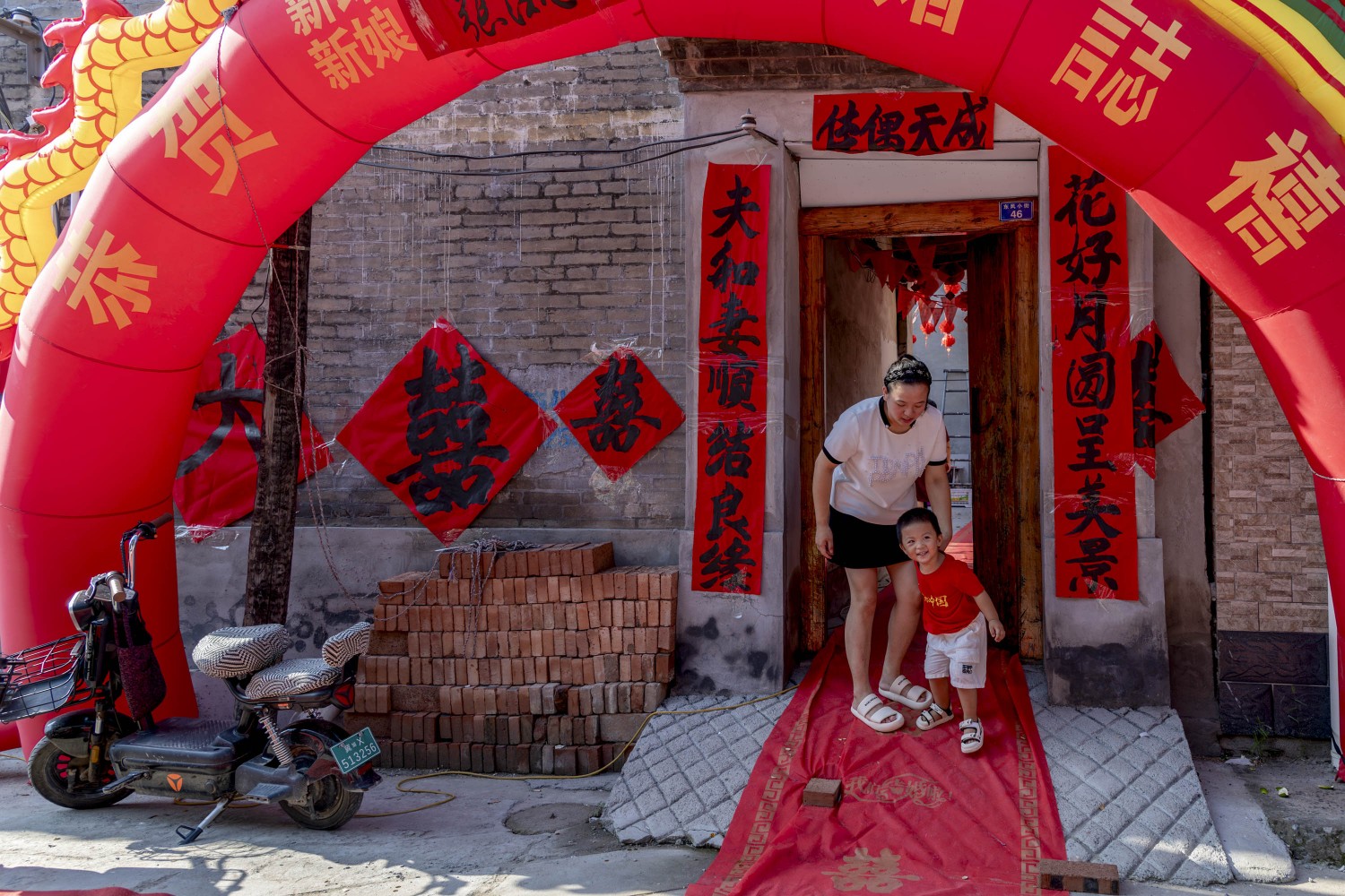 作品说明:拍摄于河北省雄安新区采蒲台村,孩子和母亲在门口高兴的等待新娘到来的时刻。