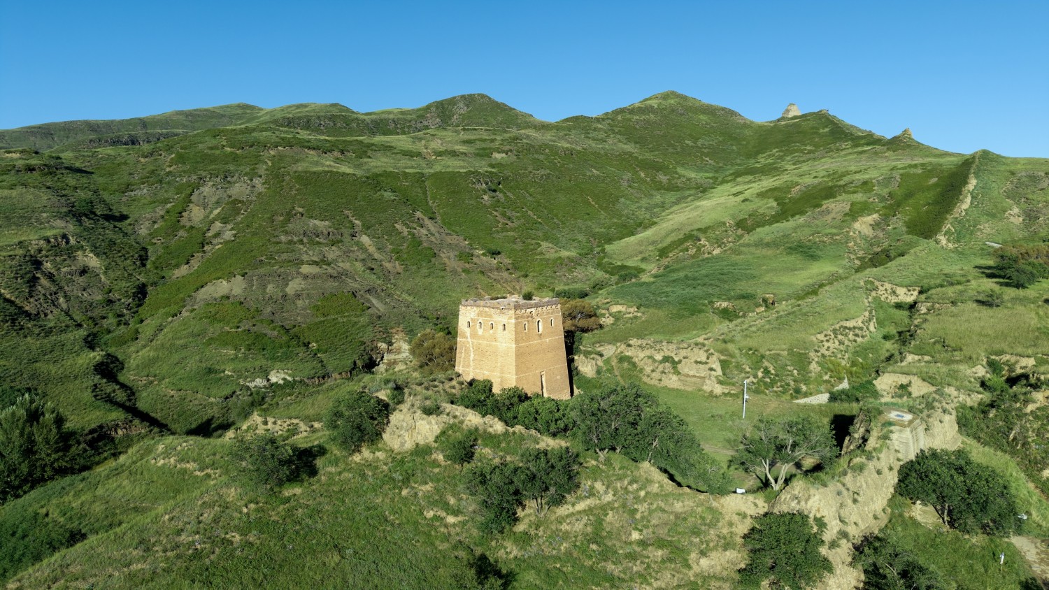 作品标题:《绿原孤楼,塞上风骨》