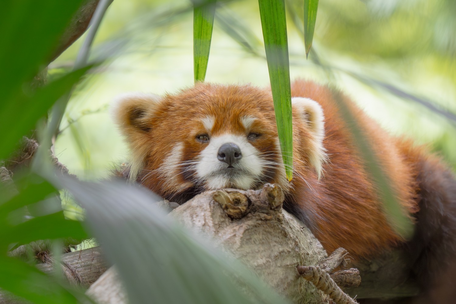 作品说明:都江堰熊猫谷的树影婆娑,给这位睡眼惺忪的小住客送上一朵轻柔的绿荫