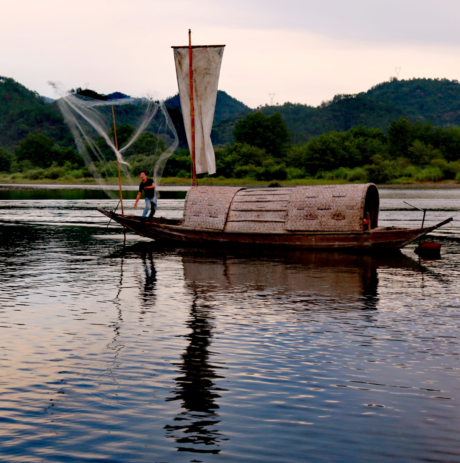 作品标题:江上晨捕