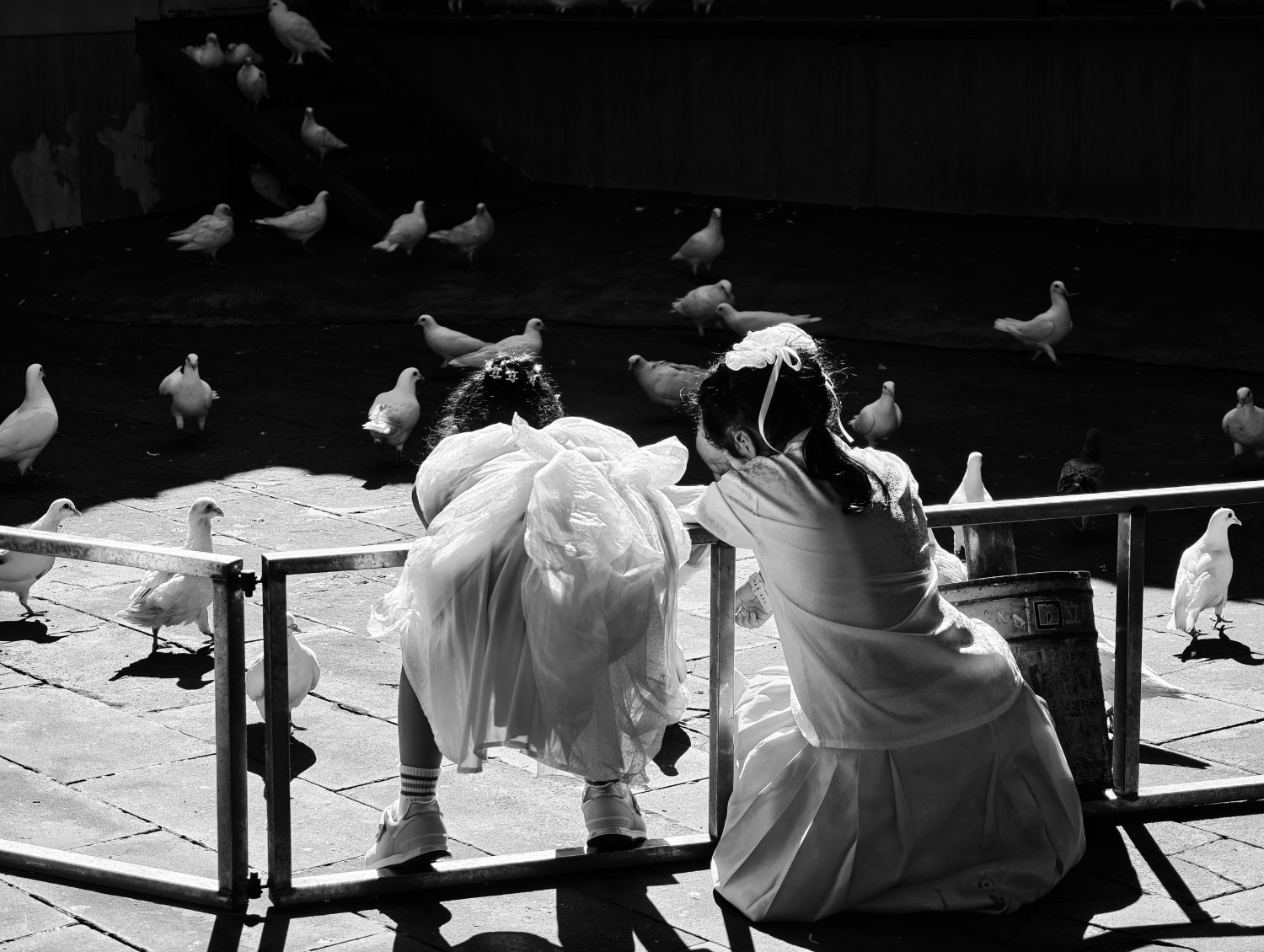 作品标题:光影下的鸽语童真