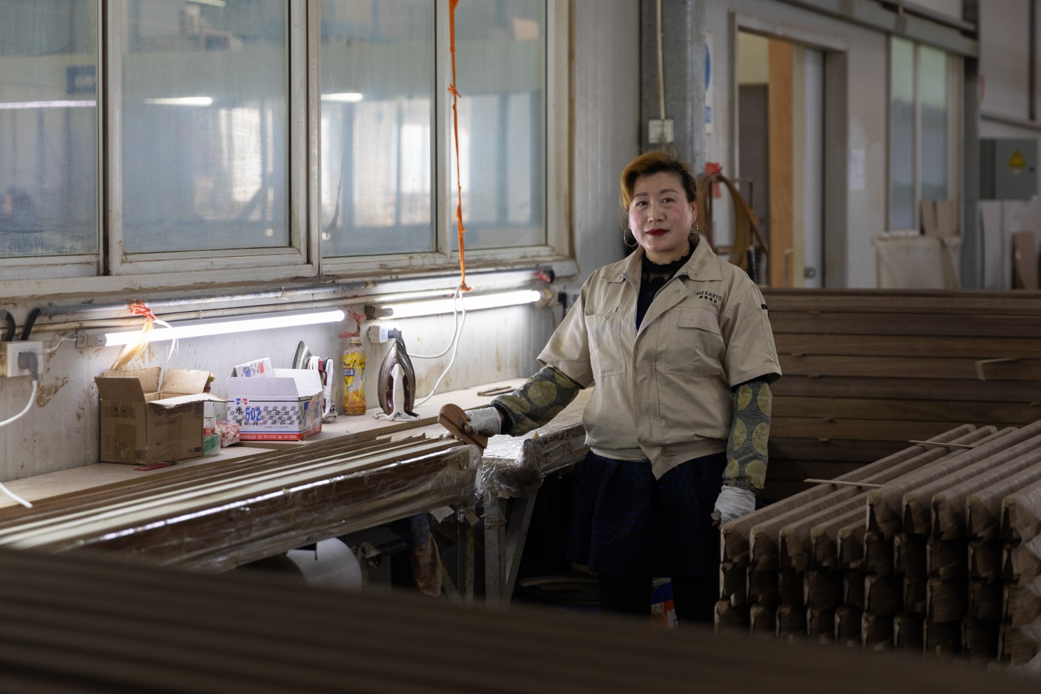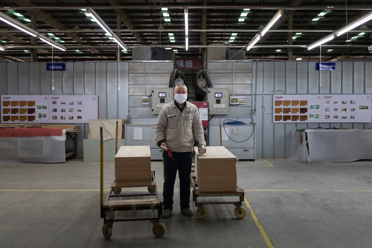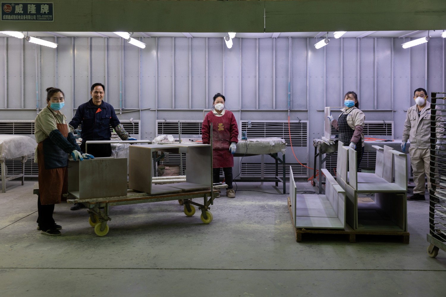 作品说明: 作品的构思肇始于日常工作之中,最初参加工作时常感叹于展厅中家具精妙的结构、细腻的纹理以及不菲价的价格,它们引来多国来访者的赞叹,为工厂争得国际声誉。究竟是怎样的生命制造了这些产品,描绘了精致生活的图景,我不禁想要看见唯美背后真正的支撑,是怎样的一群人创造了这样的生活,他们又有怎样的生活? 传统宣传片的视觉修辞长将工人这一主体性或作为工艺流程介绍的背景元素,或被特写镜头简化为承载工匠精神的符号载体,以唯美和纯粹的形式趣味取代了对纷繁现实的思考,遮蔽了结构背后的结构。 本组作品希望以平静的观看取代窥视的镜头,工人们身处画面中心,平静、自信地面对镜头,泰然自若,在全球化产业链中,在那些注意力未曾聚焦的地方,中国工人们建构了我们时代的景观。