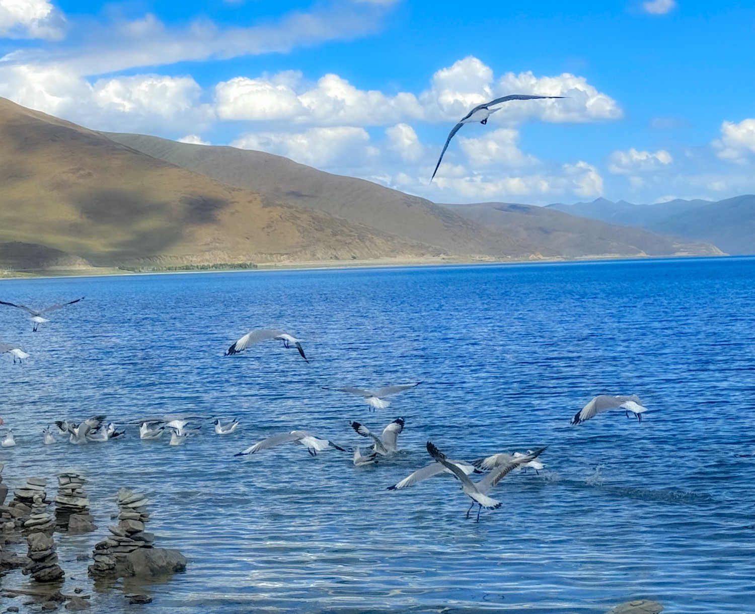 作品说明:《freedom》 羊湖边的海鸟,拥抱蔚蓝的天空,是自由的回响