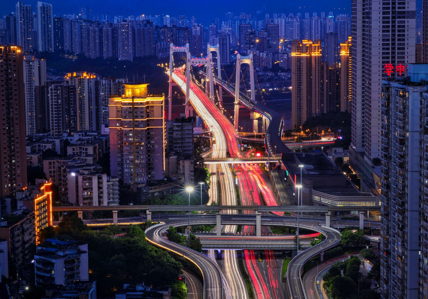 作品说明:2024年6月30号,拍摄重庆市登高远眺鹅公岩双桥,车来车往,川流不息。
