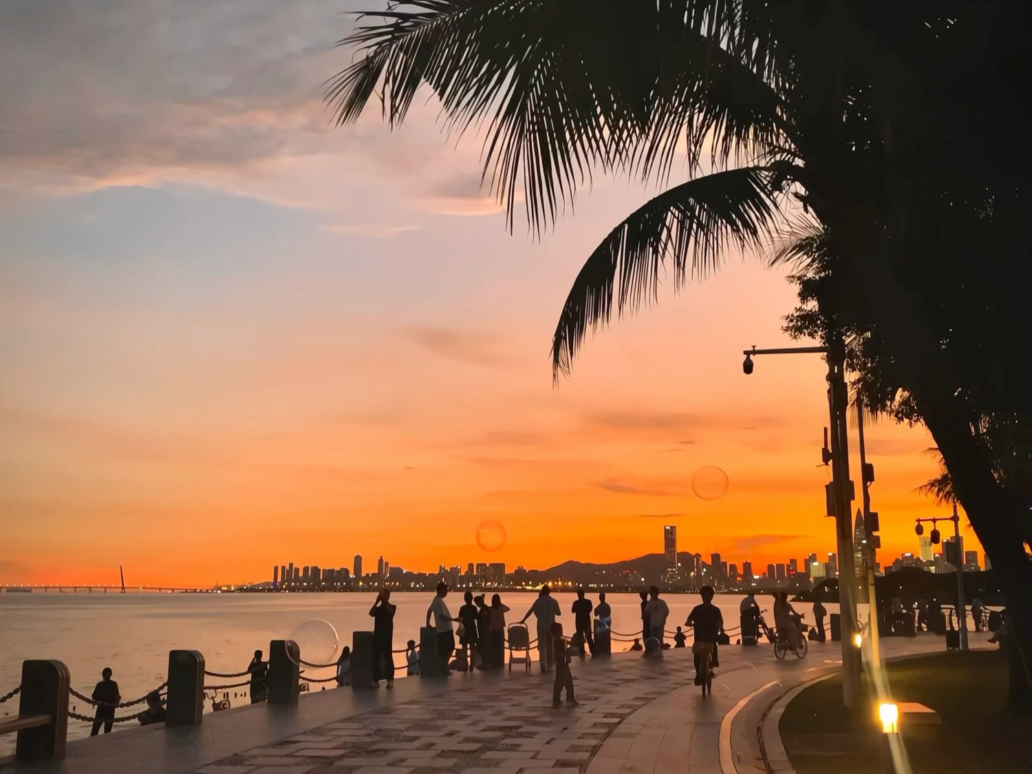 作品说明:椰风、晚霞、都市人