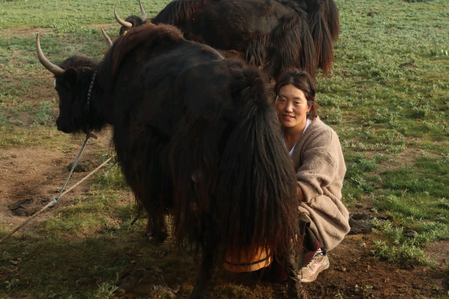 作品说明:清晨,阳光照耀泽库草原,牧民开工,挤牦牛奶。