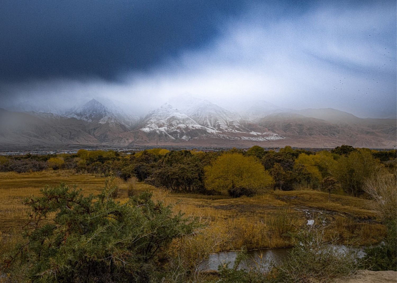 作品说明:新疆维吾尔自治区塔什库尔干县,位于帕米尔高原,平均海拔3900米左右,由于山上常年积雪,融化的冰雪在山下形成了湿地,每年十月,遍地金黄色,与白色冰雪、褐色山脉,汇成一幅梦幻景象,实属惊艳。