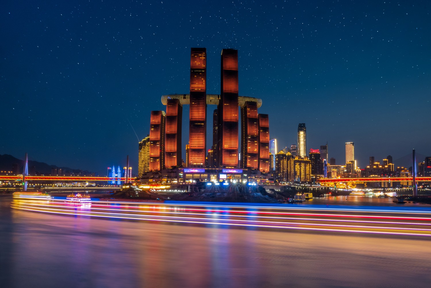 作品说明:在重庆南岸区滨河路上拍摄重庆两江汇合口及朝天门码头的壮观景象。