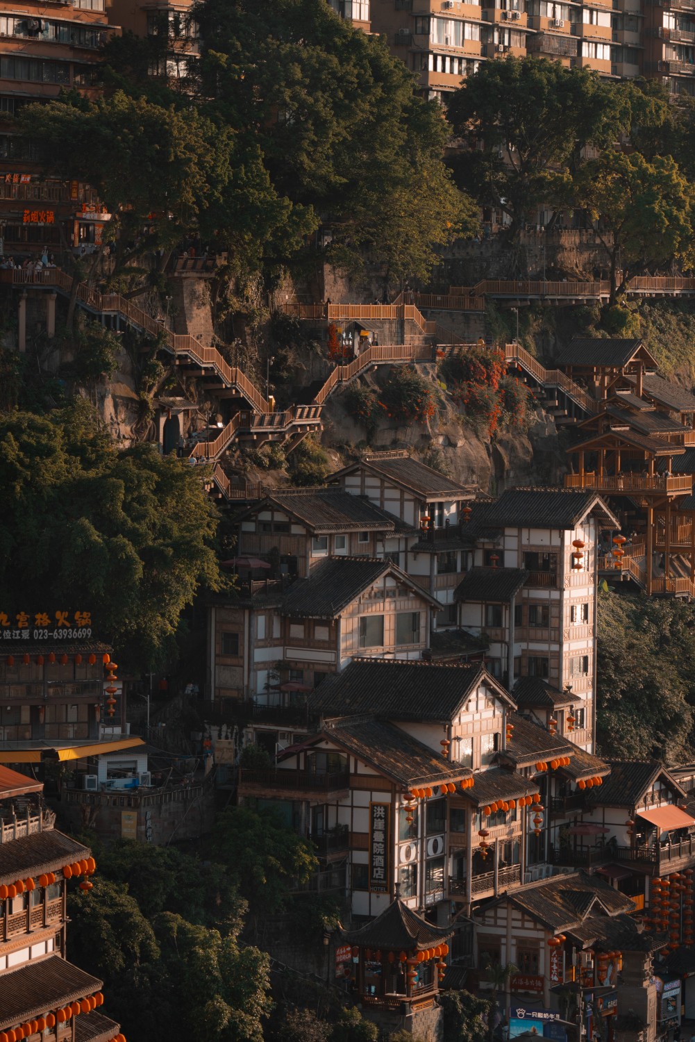 作品说明:日暮时分的洪崖任然生机焕发,植被、栈道、吊脚楼交汇于这座千年之城,向游人倾诉着过往云烟