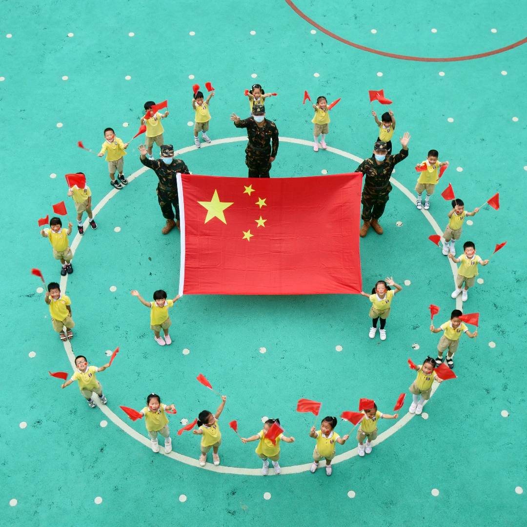 作品说明:摄自常州天隆金梅幼儿园,国庆前武警战士专门到幼儿园,给小朋友讲国旗、讲共和国