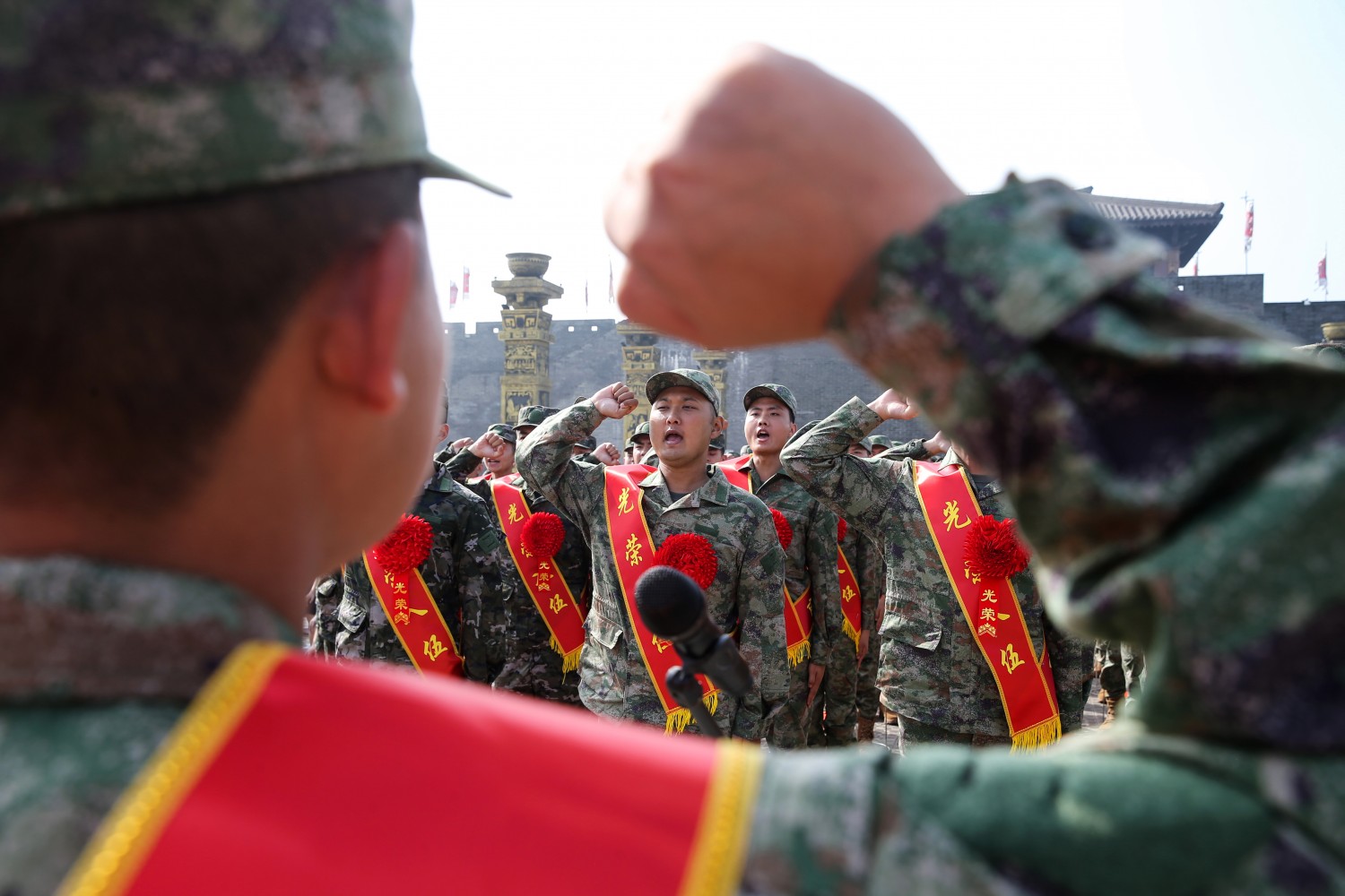 作品说明:2025年9月14日,山东省临沂市郯城县入伍新兵进行集体宣誓。