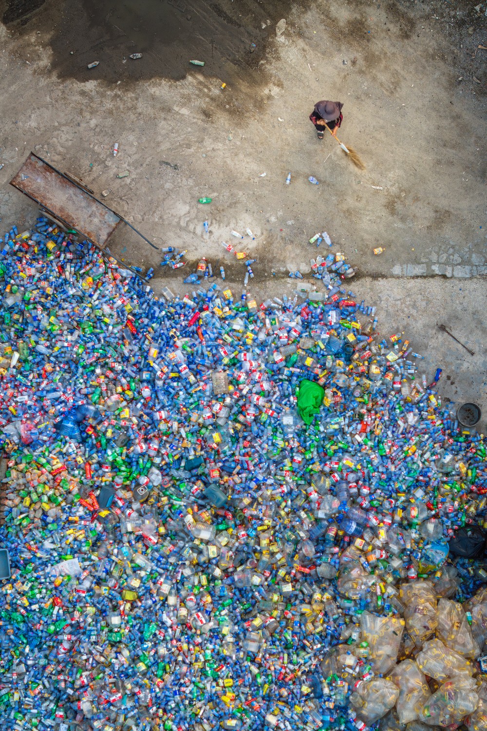 作品说明:五颜六色的塑料瓶堆积成 “海”,一位回收者在其中 “航行”,以扫帚为桨,试图在这片由人类消费行为造就的 “海洋” 里,打捞起关于环保的觉醒。 每一个被丢弃的塑料瓶,都是生态的一道伤口;每一次回收的尝试,都是为地球愈合的努力。在可持续发展的命题里,人与环境并非对立的两端 —— 这些被分类、被回收的塑料,本可以是资源的循环,而非荒野的墓碑。