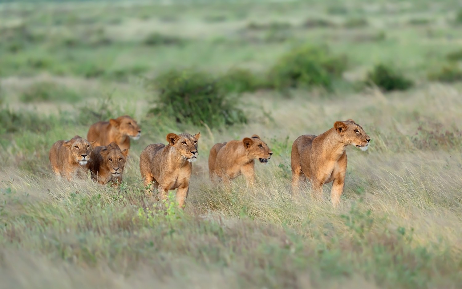 作品说明:2024年2月份拍摄于肯尼亚桑布鲁保护区,傍晚时分一群母狮开始出来捕猎踩点,等待天黑时出击捕猎,母狮群体出发时捕猎目标主要时体型较大的食草动物。