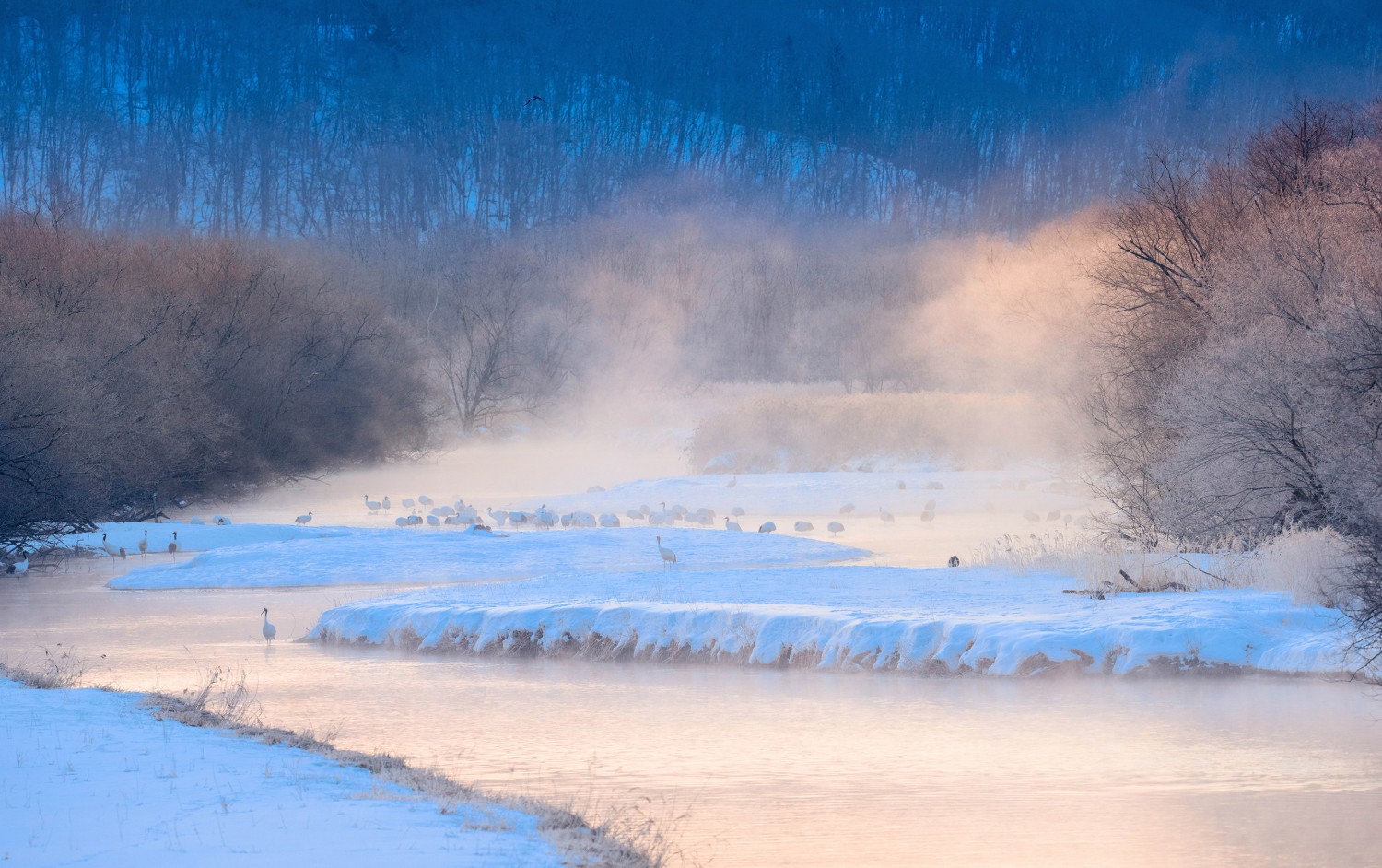 作品说明:2024年3月6日拍摄于日本北海道釧路音羽桥,晨曦日出时分音羽桥湿地晨雾升腾,阳光照在水面与晨雾,醉人的金色晨雾湿地中丹顶鹤在悠闲的觅食,好迷人的仙境。