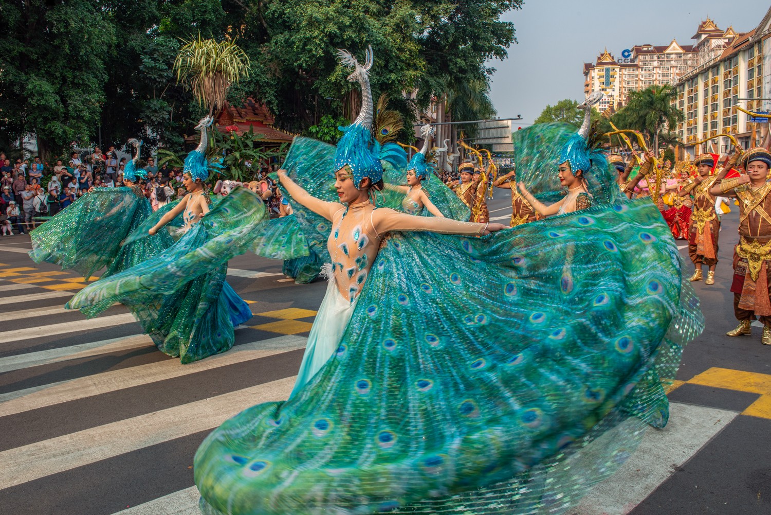 作品说明:泼水节又名“浴佛节”,傣语称为“桑堪比迈”(意为新年),西双版纳傣族自治区的傣族又称此节日为“尚罕”,名称均源于梵语,意为周转、变更和转移,指太阳已经在黄道十二宫运转一周开始向新的一年过渡。阿昌、德昂、布朗、佤等族也过这一节日。泼水节成为一种民族习俗流传下来,已经有数百年的历史了。泼水节每年举行一次,是西双版纳隆重的传统节日之一。其内容包括民俗活动、艺术表演、经贸交流等类别,具体节日活动有泼水、赶摆、浴佛、赛龙舟、民俗巡游、放高升、放孔明灯、孔雀舞表演等。2006年5月20日,云南省西双版纳傣族自治州申报的傣族泼水节经国务院批准列入第一批国家级非物质文化遗产名录,编号Ⅸ—8。