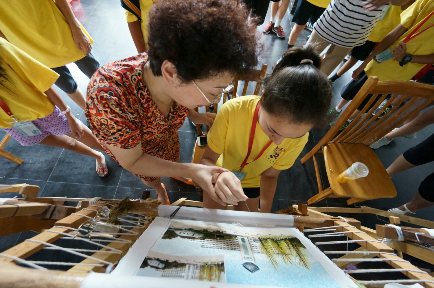 作品说明:华裔混血女孩在名师指点下尝试非遗乱针绣。乱针绣是中华非遗名绣之一。