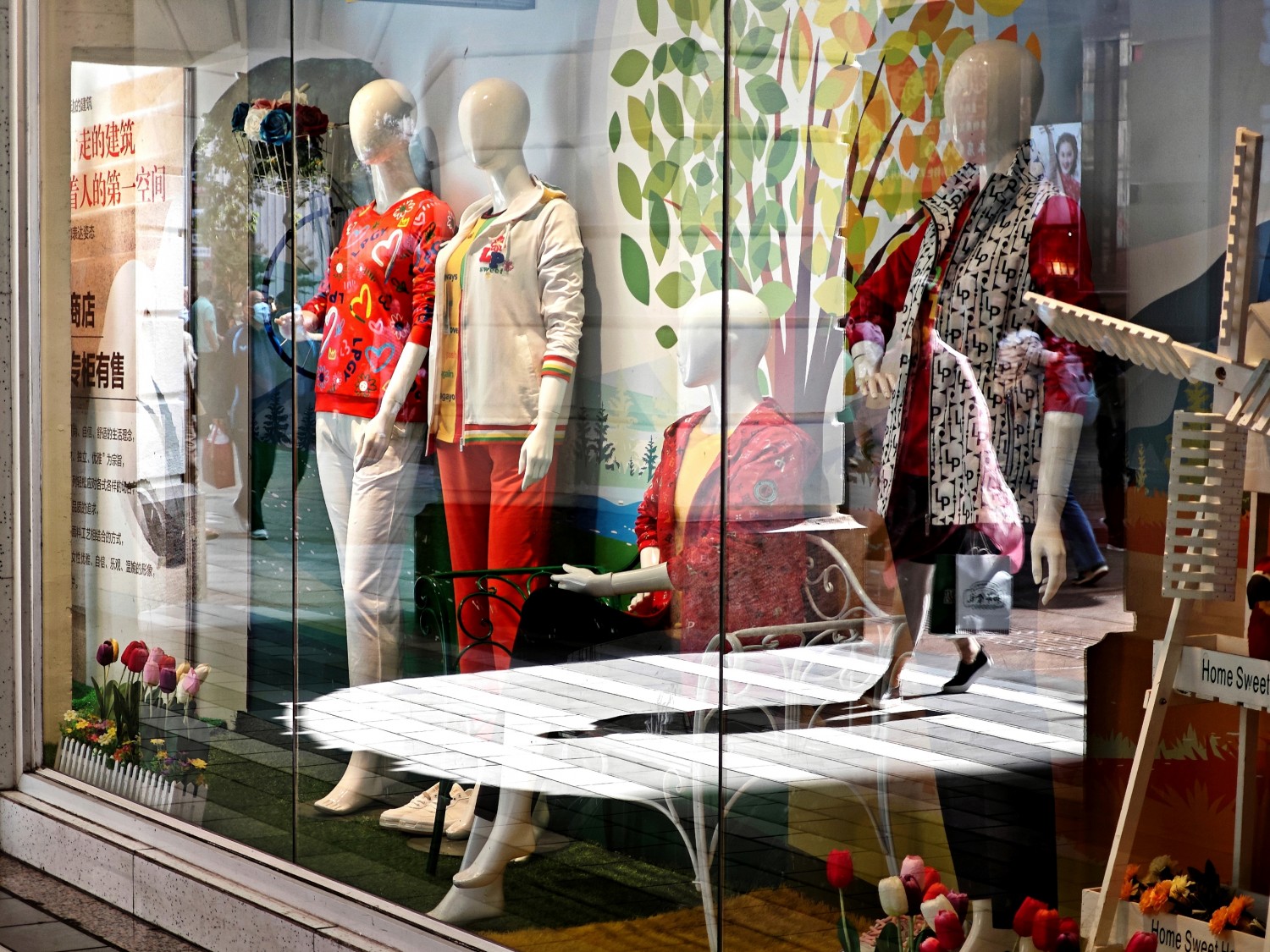 作品说明:一个静态的时尚空间。而反射光巧妙地将行人融入其中,打破了橱窗内外的界限,使静态与动态、虚拟与现实在此交汇。行人仿佛是从橱窗 T 台迈出的模特,赋予画面独特的时尚张力与艺术氛围感,展现出街头时尚那不经意间的灵动与奇妙融合。