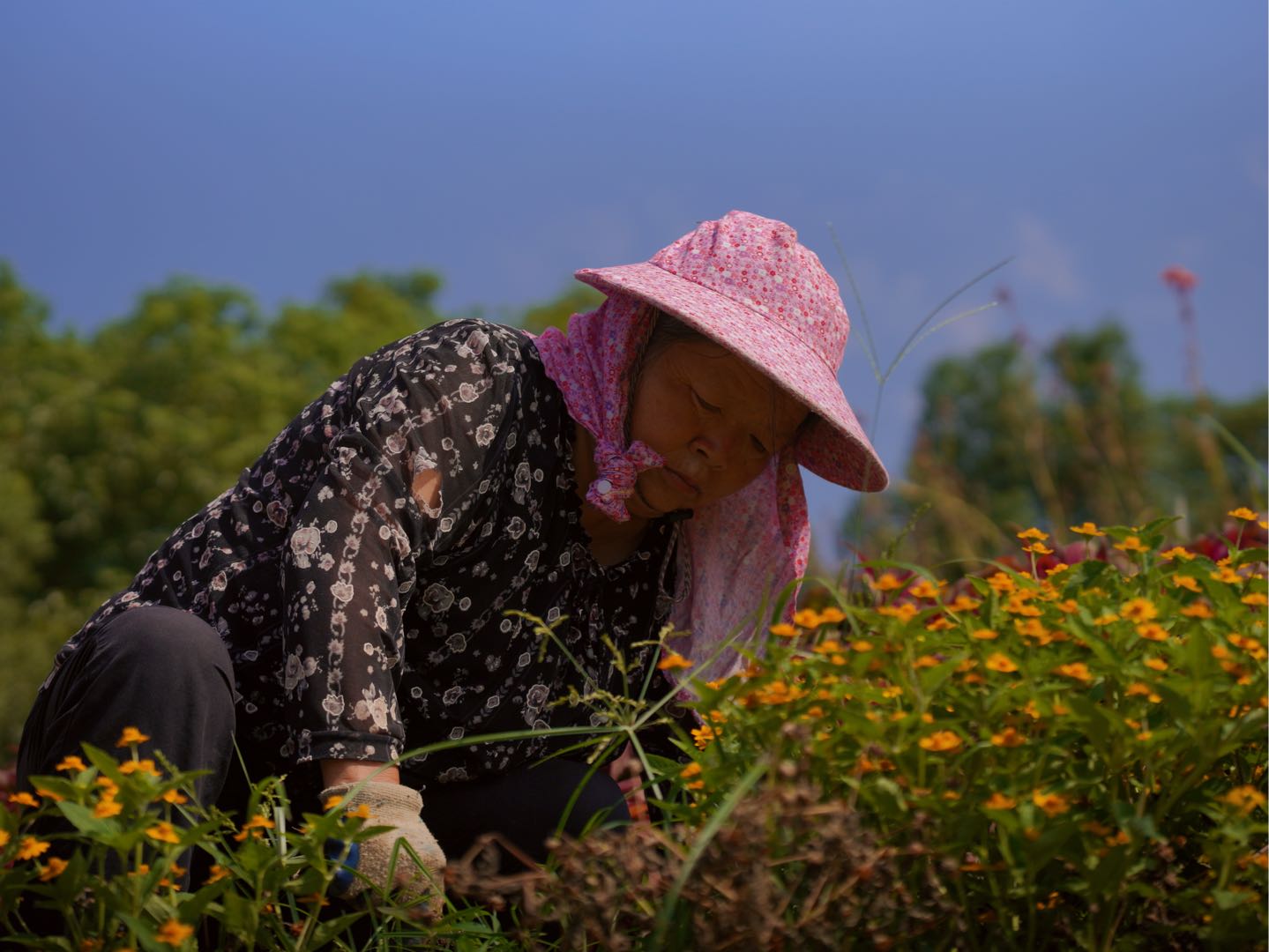 作品说明:散步偶遇一群可爱的奶奶们,劳动最光荣,顶着烈日,为街道增添了不少色彩和活力,为她们点赞