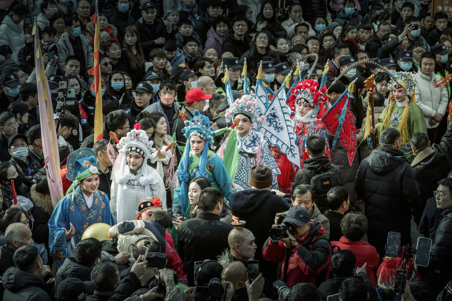 作品说明::2025年2月13日是我国传统的元宵节,在河南省鹤壁市浚县古城举办了盛大的社火表演,豫戏高跷队在人群中登场献艺。