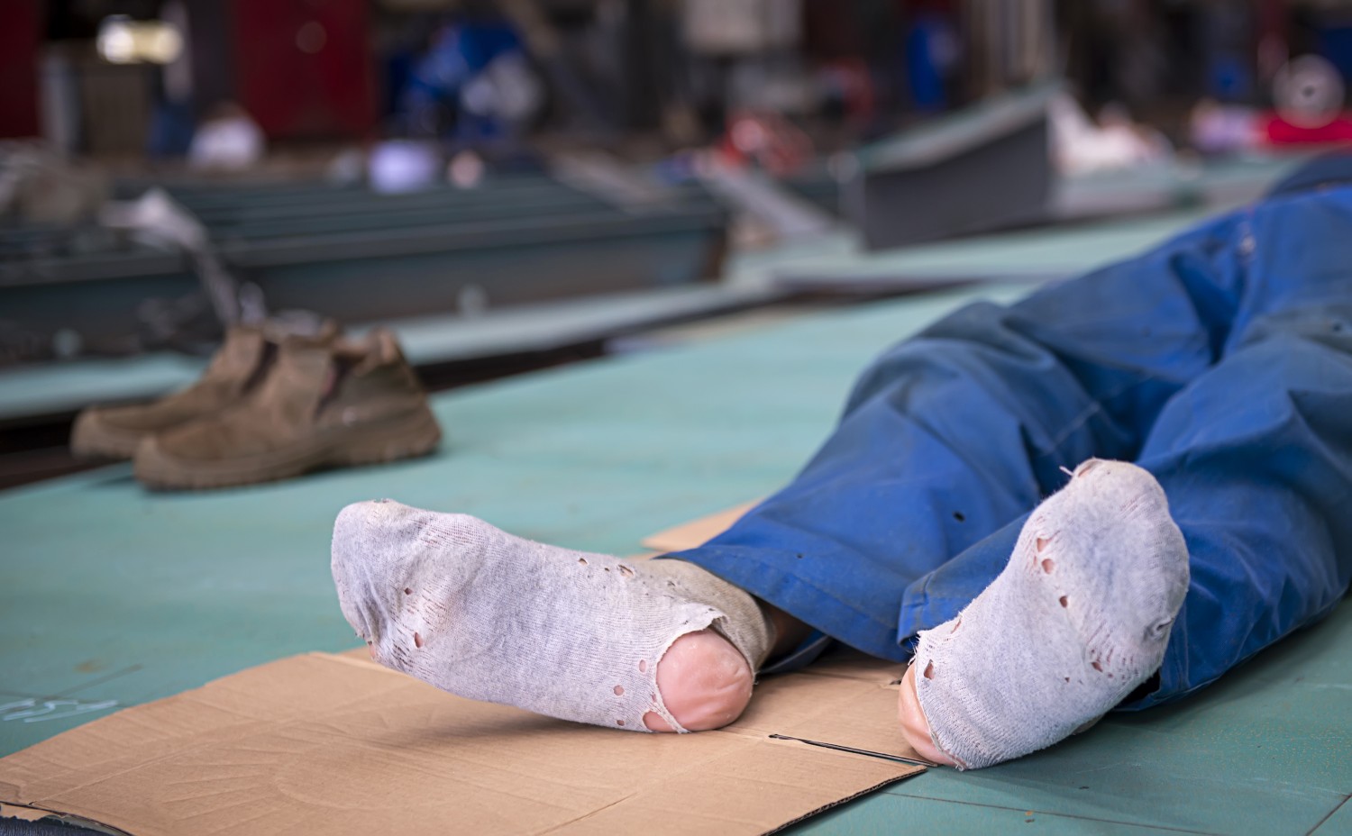 作品说明:休息中的工人。