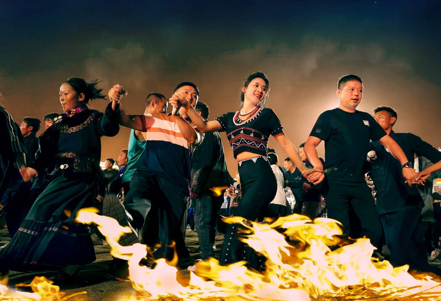 作品说明:四川大凉山,传统火把节上年轻的朋友们伴着火焰的悦动激情民族舞