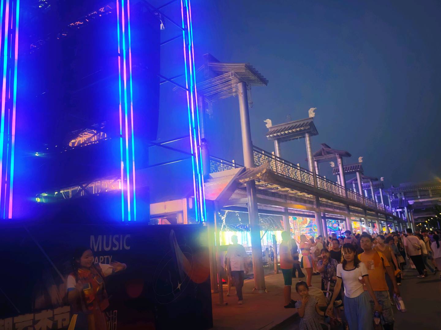 作品说明: 谁懂啊!在万岁山武侠城的江湖音乐广场站了半小时,根本挪不动腿!台上琴鼓和鸣,唱的是刀光剑影的故事;台下游人跟着拍手,晃着荧光棒像在给侠客助威。夕阳把飞檐染成金红色时,突然飘来一段《铁血丹心》的旋律,瞬间感觉自己下一秒就要提剑走天涯!