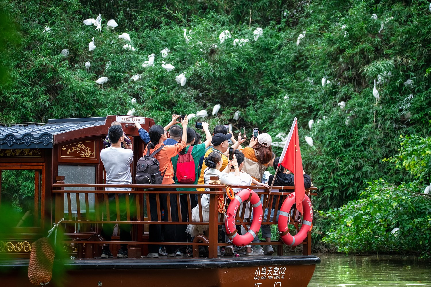作品说明:广东省江门市新会区小鸟天堂湿地公园是天然的赏鸟胜地,四百多年的一棵榕树独木成林,树上栖鸟千万只,鸟树相依,人鸟相处,和谐奇特,堪称南国奇观,被评选为“中国最美古树王”,是世间罕有的一道自然美丽风景线。图片是游客们在观鸟、赏景时用手机记录着美好风光和愉悦心情,把“鸟儿”和快乐一起带回家的开心时刻。