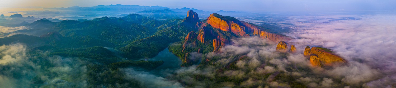 作品说明:龟峰——作为“中国丹霞”的组成部分于2010年被列入《世界遗产名录》。画面中,丹霞地貌的红色岩层在阳光照耀下熠熠生辉,色彩浓烈而鲜艳,纹理清晰可见,尽显大自然的鬼斧神工。山间云雾缭绕,如轻纱般弥漫,与翠绿的山林相互映衬,增添了几分神秘与空灵。