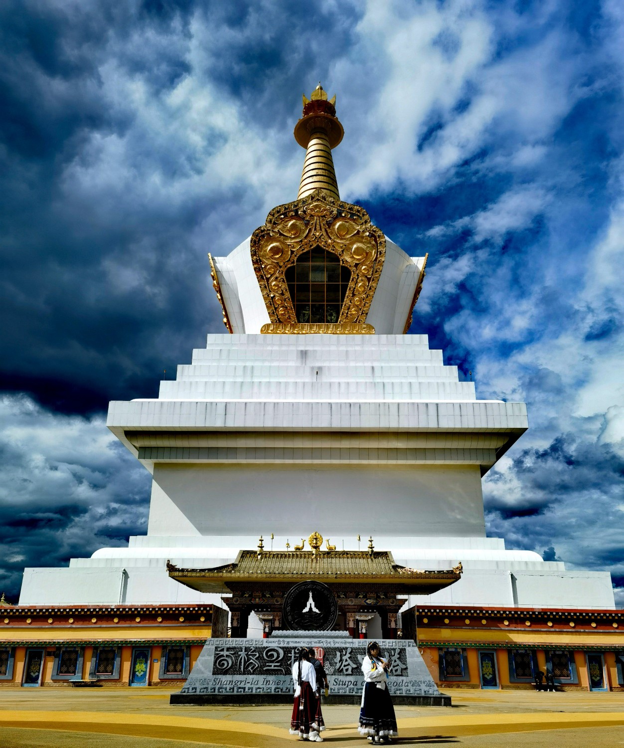 作品说明:白塔位于香格里拉市迎宾大道一号,该塔融合藏传佛教“塔中塔”建筑特色与象征和谐团结的寓意得名“和谐塔中塔”。在深秋的蓝天白云衬托下,白塔无愧被誉为“香格里拉之窗”!此时几位身着节日盛装的藏族“卓玛”与蓝天、白塔“和谐融为一体,作者迅速用手机记录下这美丽瞬间!