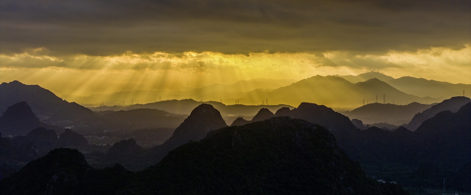 作品说明:广东省阳春市合水镇的晨曦中,一缕金色阳光破云而出,洒向万山丛中,宛如一幅天然画卷。这里展示着百千万工程的伟大成就,在阳光的照耀下,山林与田野相互映衬,公路与村庄错落有致,整个山区呈现出一派生机勃勃、美轮美奂的景象,令人陶醉。