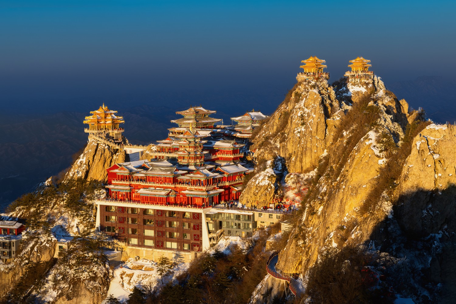 作品说明:雪后傍晚,河南洛阳的老君山在夕照下美丽动人,美丽宜人。
